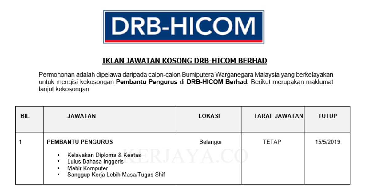 DRB-HICOM Berhad (1) • Kerja Kosong Kerajaan